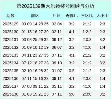 大乐透第2025139期空洞推选: