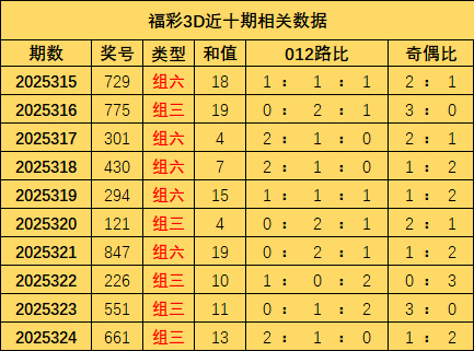 河北志航管道装备制造股份有限公司 325期徐倩福彩3D预测奖号:类型分析
